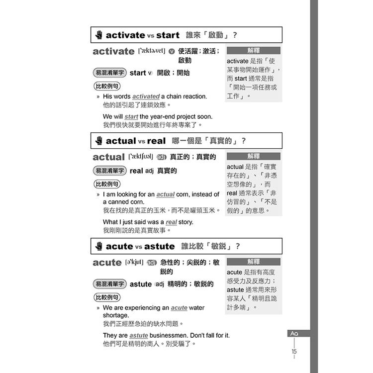 無論在考試或日常生活中,單字都是英文學習的第一步。然而,許多單字拼寫相似,字面意思也很接近,一不留神就容易混淆或誤用。