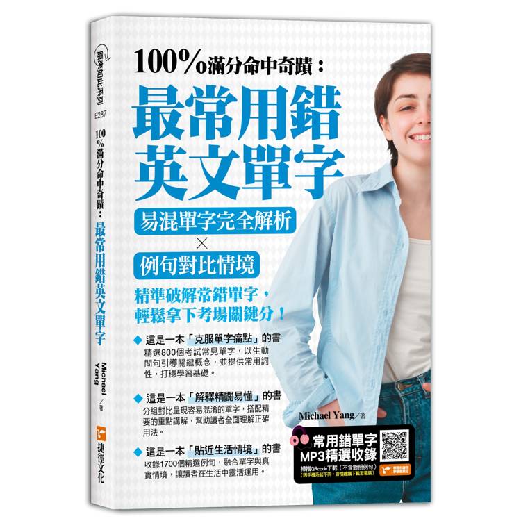 《100%滿分命中奇蹟:最常用錯英文單字,易混單字完全解析╳例句對比情境》收錄大考中最常出現的易混淆單字,幫助你輕鬆掌握單字的核心字義,逐步釐清相近字彙的用法,還能依照情境靈活運用,提供磨練英文實戰力的最佳利器。