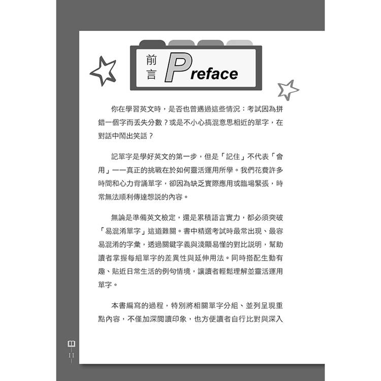 收錄800多個考試最常見的易混淆單字,透過生動的引導式問句幫助讀者理解單字概念,同步列出常用詞性與重要字義,為學習打下扎實基礎。