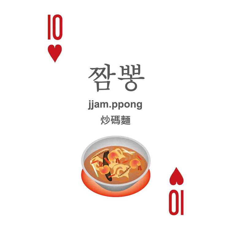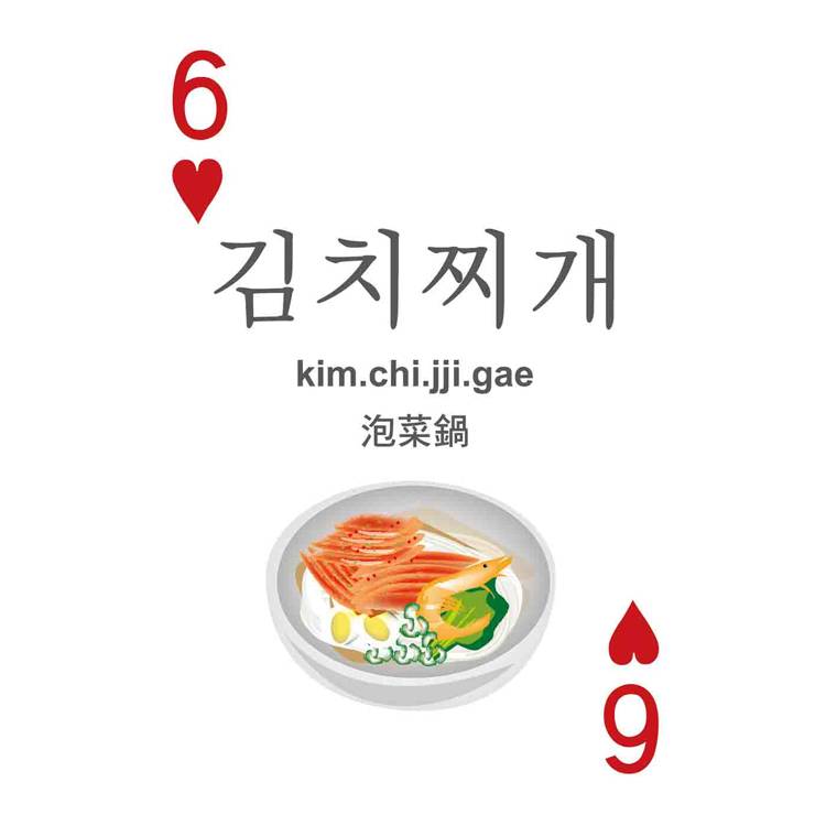 54張標準撲克牌囊括「數字」、「生活用品」、「韓式料理」、「顏色」共4大類實用韓語生活單字,隨身攜帶最輕巧,出國旅遊最實用!