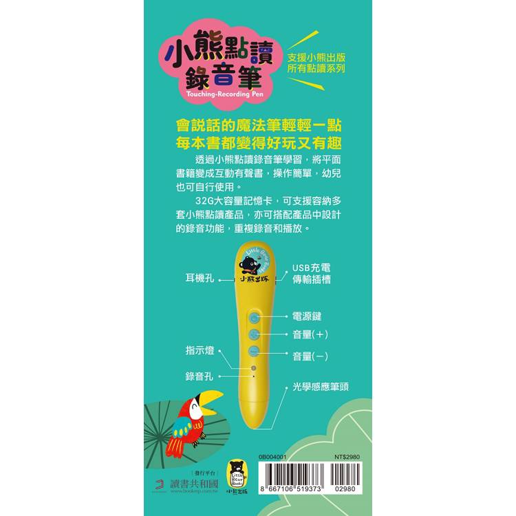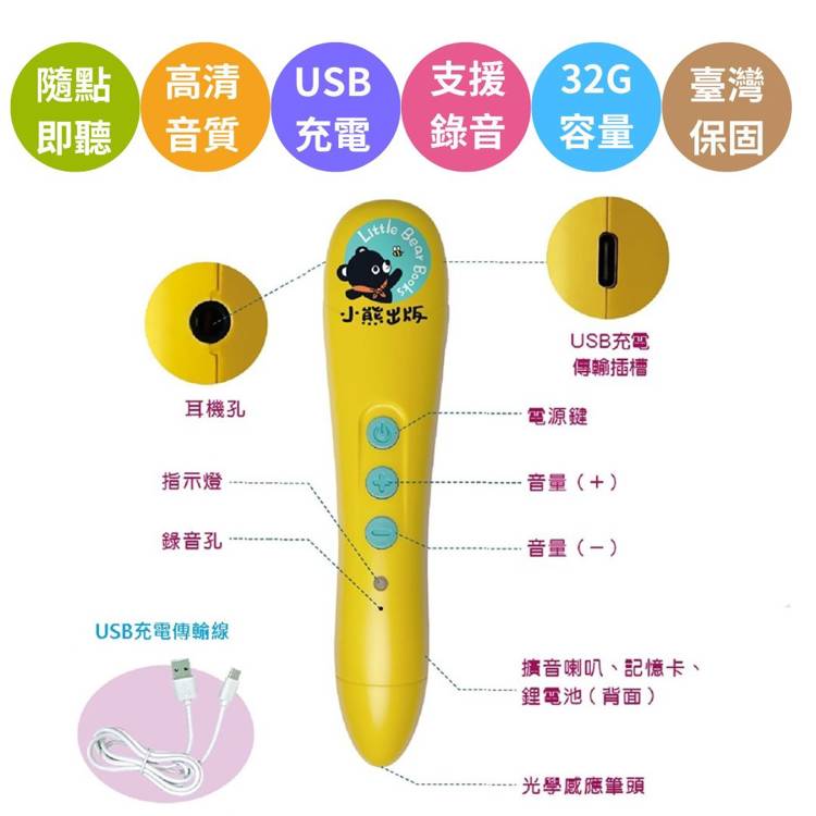 小熊點讀錄音筆(含32G記憶卡+充電式鋰電池)附USB充電傳輸線