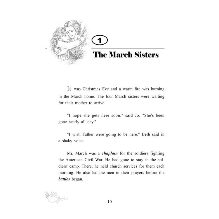 雖然個性截然不同,但她們都能發揮所長、朝著自己的目標邁進,並在動盪不安的時期裡,學會珍惜生命中最原本、最珍貴的愛、安全、和平和健康,成為成熟懂事的小婦人。