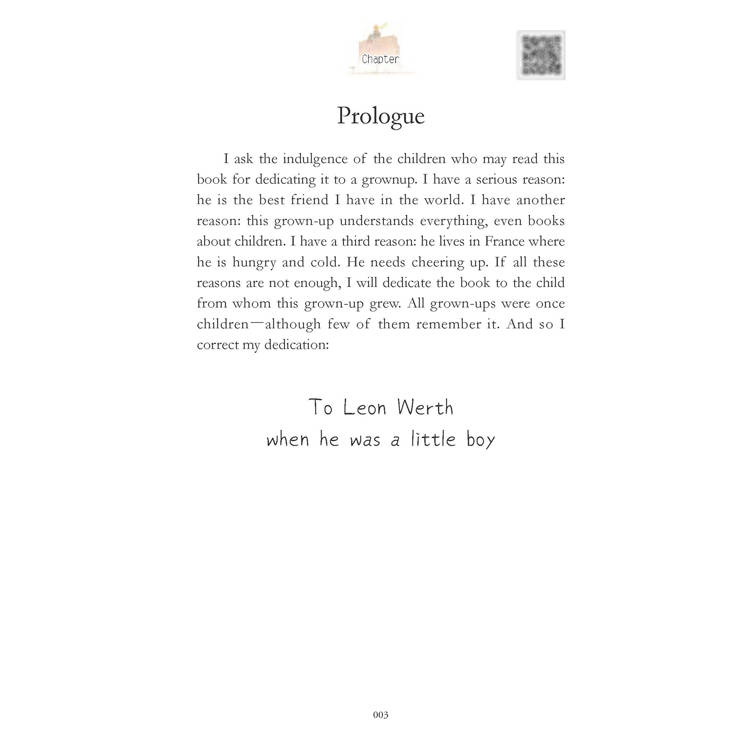 這是一本給大人看的童書,讓大人了解到情感羈絆的獨特,在於那些肉眼所看不到的東西,而也是最重要的東西。這是一本教會大人關係意涵的書,與情人間的關係、與朋友間的關係、與社會間的關係,小王子旅行其中,仍不失他最純粹的真諦,仍以他對大人們的不解道破大人們的愚蠢。