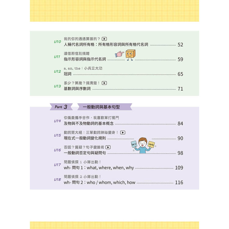 接著,公司同仁們的投入協助,重新整理內容、調整架構,加入更精緻的插圖、例句與解說,使本書能在「零壓力」的閱讀下,真正理解文法的脈絡。說這是入門文法書中最清楚、最好懂的一本,也不為過。