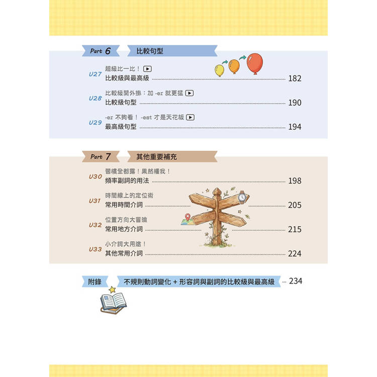 搭配「常春藤之星」冠軍顏羽辰老師錄製 15 支精準講解影片。化身專屬家教生動破解核心盲點,帶你一看就開竅!本書首創「全彩圖解 ✕ 實戰練習 ✕ 線上闖關 ✕ 教學影片」,打破死背魔咒,練文法就像玩手遊。雙重名師加持,保證讓你越學越上手,重獲英文自信!