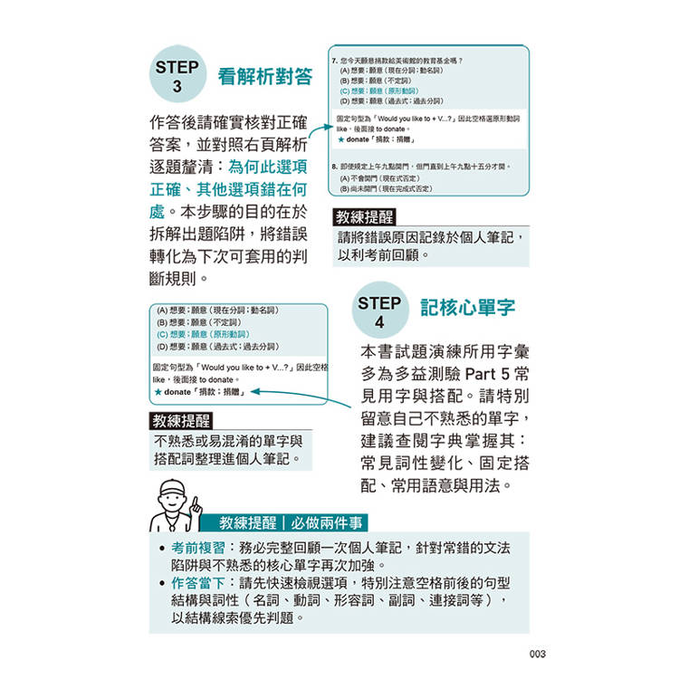 STEP 4|核心單字:補強多益Part 5常考字彙與搭配,讀題更順、判題更快。