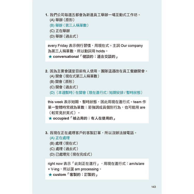 本書試題演練所用字彙多為多益測驗Part 5常見用字與搭配。請特別留意自己不熟悉的單字,建議查閱字典掌握其:常見詞性變化、固定搭配、常用語意與用法。