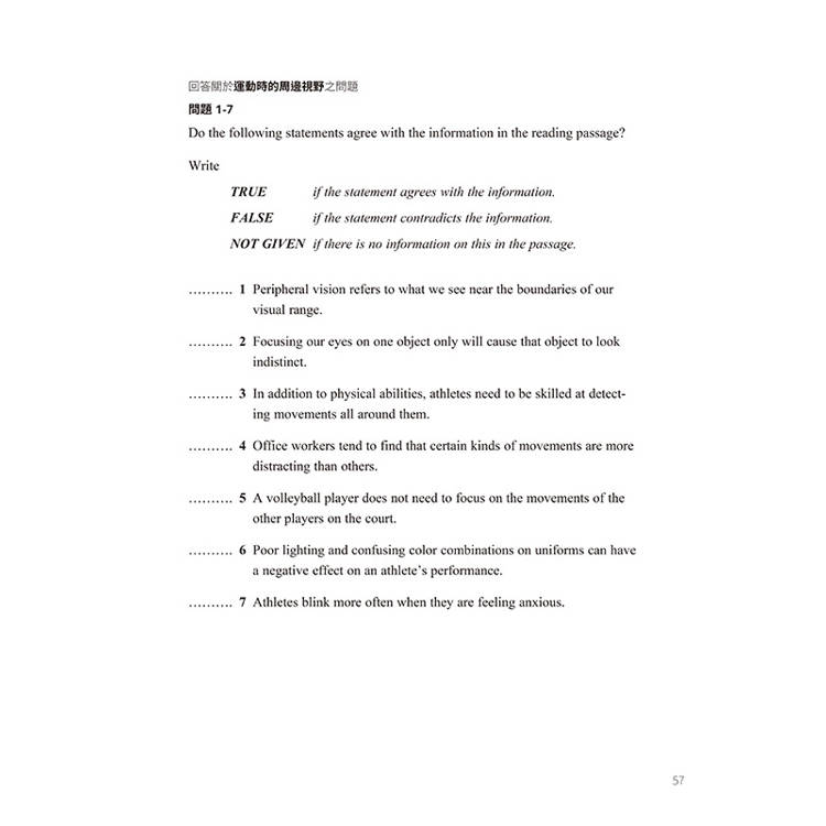 【特色三】每單元提供完全比照雅思聽力、閱讀、寫作、口說測驗的仿真模擬試題