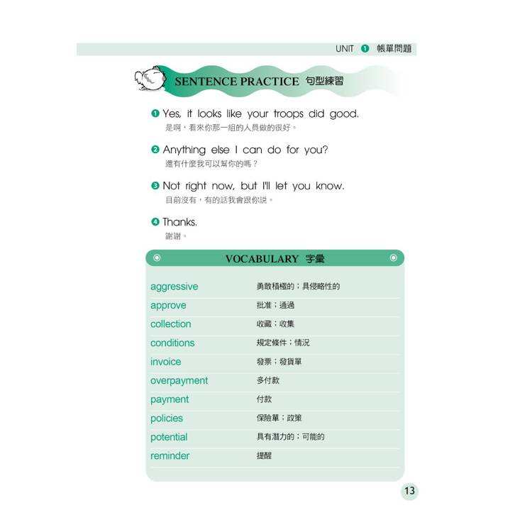 企業收帳事宜的相關會話,一次蒐羅,包括會費通知、催繳、帳務疏失時的溝通處理等,讓您一次了解正規企業的行事作風。