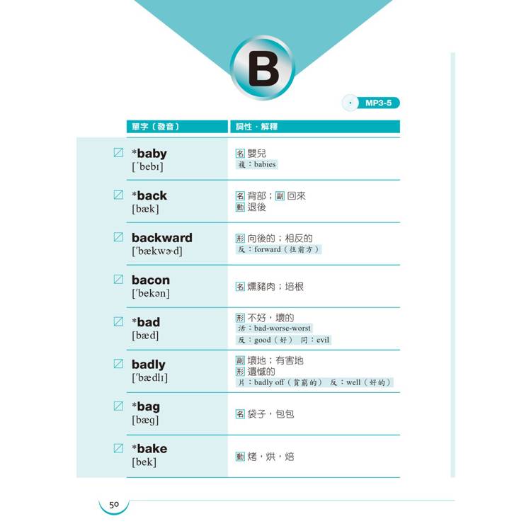 2. 依照英語26個字母順序,收錄完整的必背單字