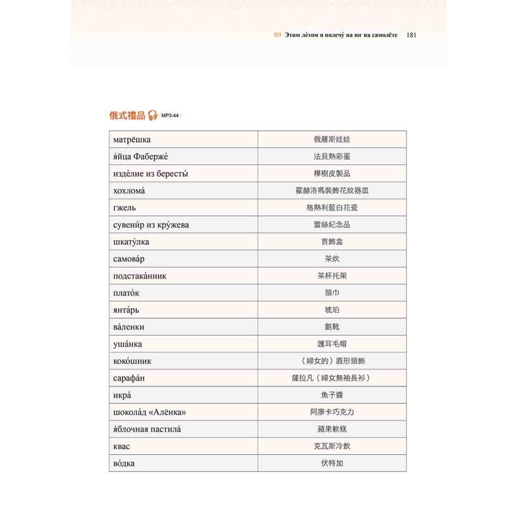 1. 學會表達長途旅行與俄式禮品相關詞彙
