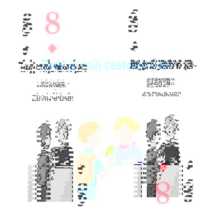 打開撲克牌玩一玩!每張撲克牌都有捷克語短句、中文翻譯(附漢語拼音),加上音檔輔助,更能帶入互動教學,大人小孩一起玩,捷克語一點都不難!