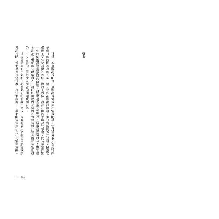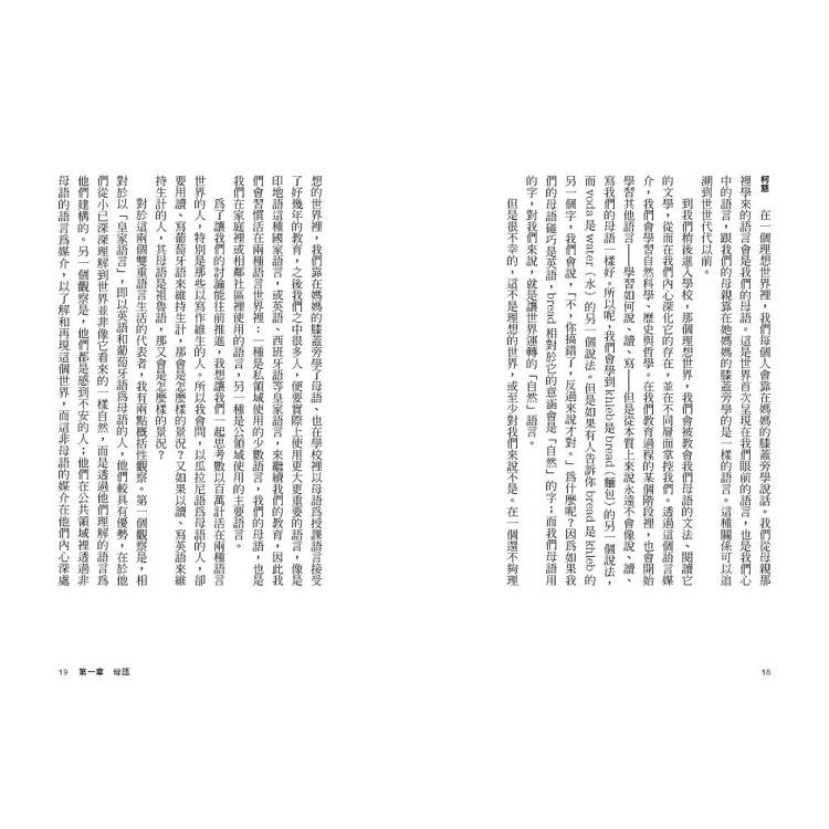 柯慈和狄莫普洛斯憑藉著兩人在語言創作領域的數十年經驗,深入探索譯者的角色與任務,以及語言之於性別、身份認同甚至於對世界的認知所代表的意義。《七嘴八舌》最終成為一部引人入勝且易於理解的哲學著作,為我們這時代一些最重要的語言學議題帶來了新的啟發。