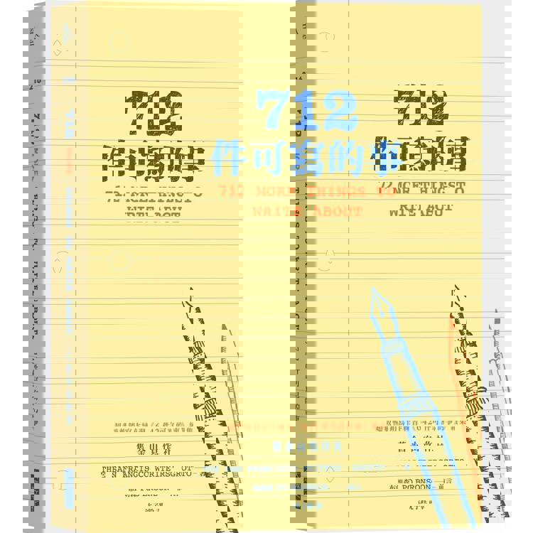 從一個問題延伸到無限創意的旅程——《712件可寫的事》為寫作者開啟靈感之門,讓思考與文字在遊戲中綻放火花。這不僅是一場文字與靈感的遊戲,更是一場重新發現想像力的邀請,讓你在日常中用筆記錄生活的詩意與思考。