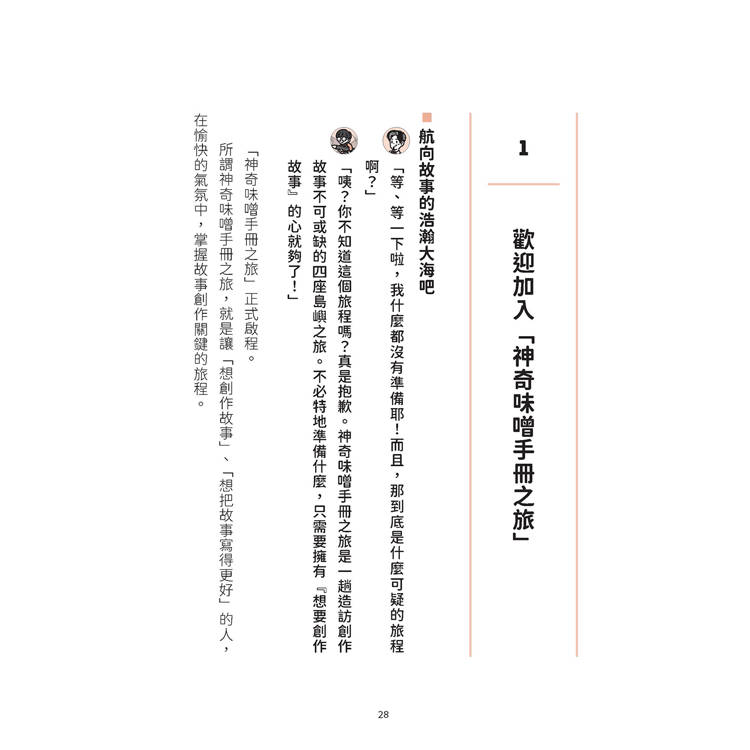 「我才不要參加這種來路不明的旅行呢!」你心裡是不是也這麼想?等等,先別急著拒絕,我希望你能回想一下。雖然你熱愛創作,但你是否曾有過以下這樣的感受?正因為太喜歡創作,所以失去自信,常抱怨自己「為什麼寫不出有趣的故事」;有時會感到不安,覺得「繼續寫下去,真的有意義嗎?」;甚至產生「這真的算是創作嗎」的疑問等。