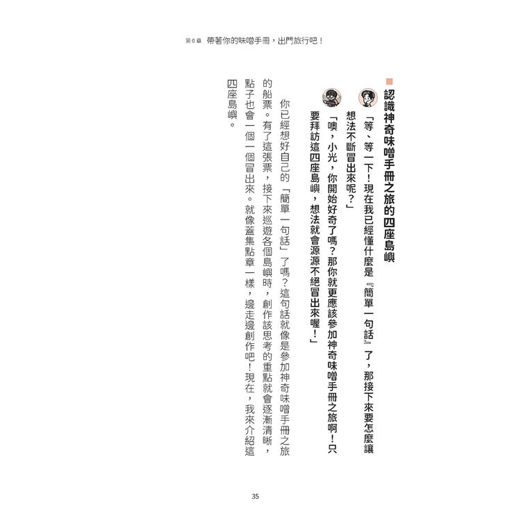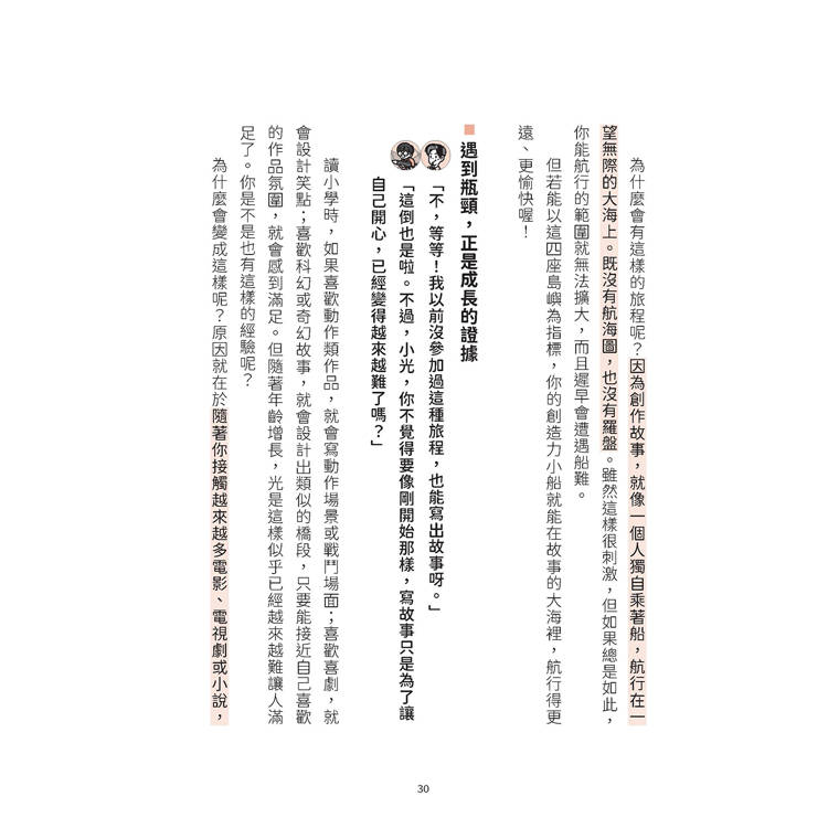 但若能以這四座島嶼為指標,你的創造力小船就能在故事的大海裡,航行得更遠、更愉快喔!