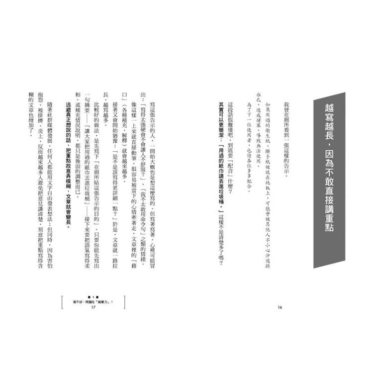 .書中也有不少修改前後的實例,幫助理解如何讓文章更精簡有力。