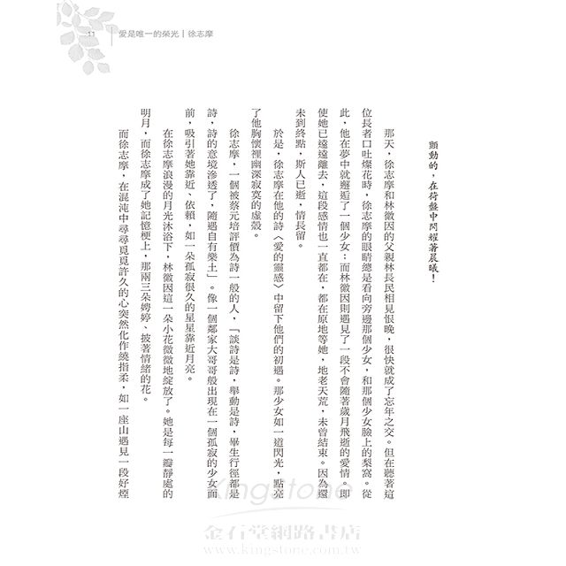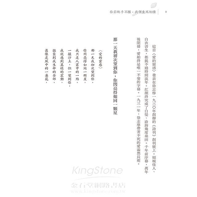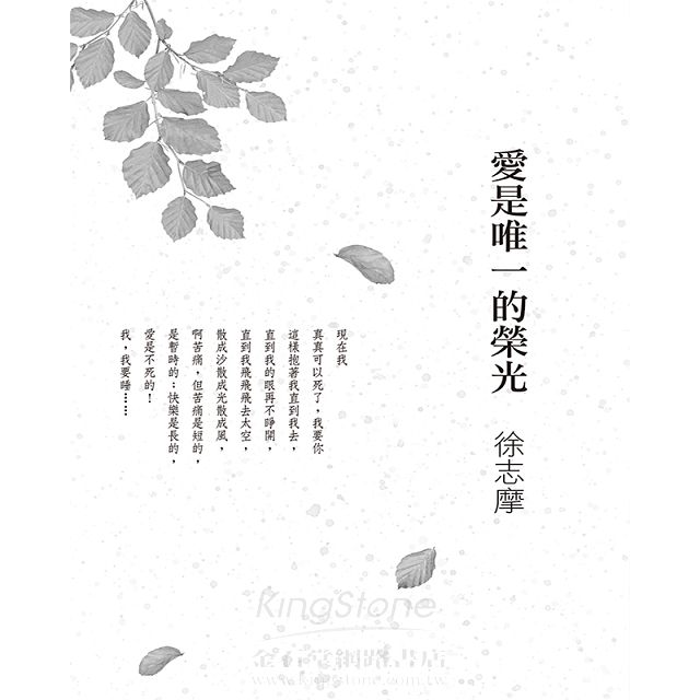這首<愛的靈感>發表在徐志摩一九三○○年創辦的《詩刊》創刊號上。傾城佳人、白衣書生,都抵不過時間流年。紅顏終究成了白髮,滄海幾度桑田。千年前序幕,萬年後閉幕,愛始終是唯一不變的字幕。一九三一年,徐志摩帶著不死的愛溘然長逝。