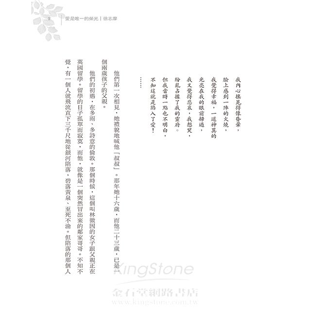 白蛇修練千年,遇見第一個長得帥的男人,就愛得天崩地裂。而十六歲的林徽因,和所有少女一般做著愛情的幻夢,設想過遇見愛情的種種:一見鍾情、一往情深、入骨相思……然而,她在真的遇見第一次愛情時,在對方為她天崩地裂陷落成淵谷時,卻並沒有把自己完全投入。許多年後,她說:「也許那就是我不夠愛他的緣故。」