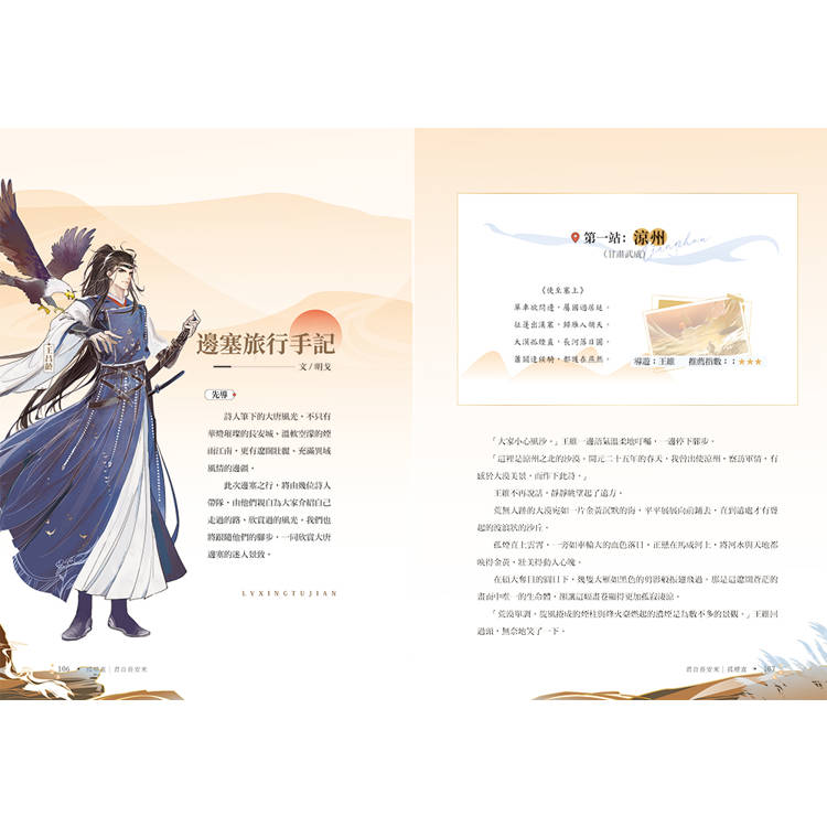 300年唐朝,盡在詩人筆下,不只有華燈璀璨的長安城、溫軟空濛的煙雨江南,更有遼闊壯麗、充滿異域風情的邊疆。就讓本書陪你穿越千年,一睹大唐盛世風光!