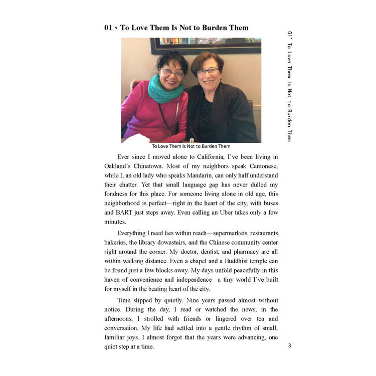 自從一個人搬到加州以後,我就住進了奧克蘭的中國城。這裡雖然鄰居多數說廣東話,與我這個講國語的老太太交流不算特別流暢,但那點小小的語言隔閡,並未影響我對這片地方的喜愛。對一個單身老人而言,這裡簡直是再合適不過的居所——市中心的位置,四通八達的交通,公車、捷運站近在咫尺,想叫優步計程車也不過幾分鐘的事。