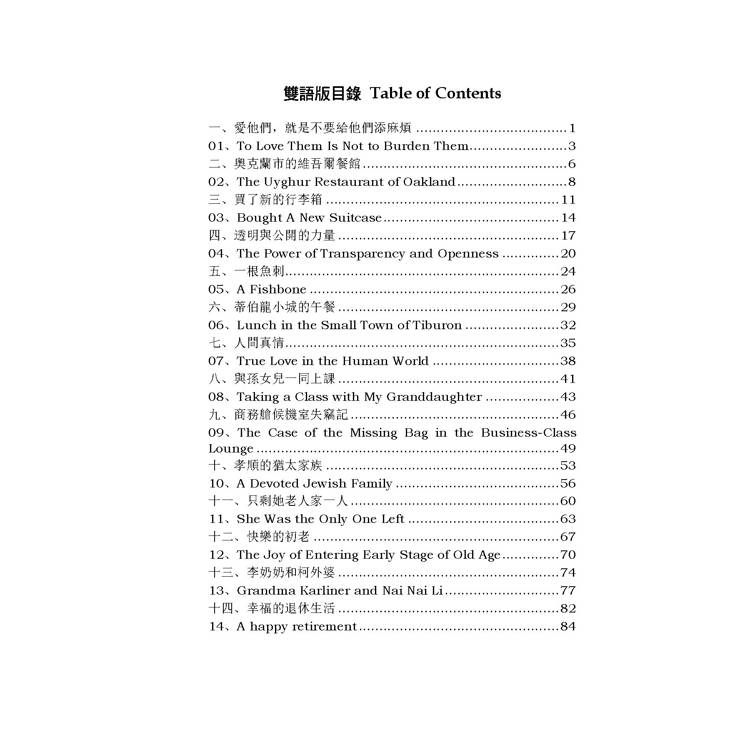 雙語版目錄 Table of Contents