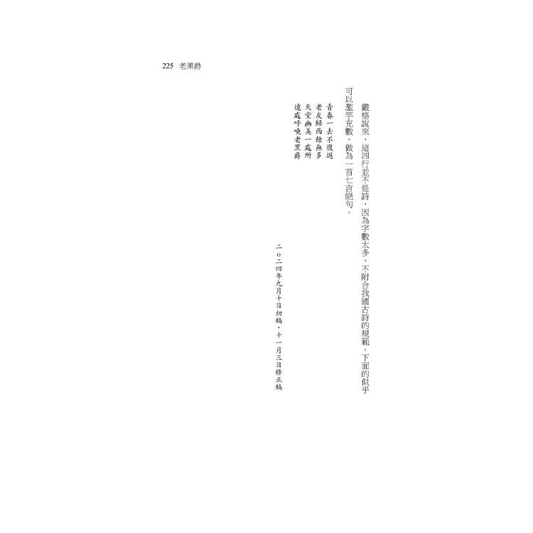 這八個字出自《詩經》,十分有人情味。我在書中提到:我兩夫妻二人要從二十幾歲一路走來,共同走過人生的每一個階段,然後雙雙攜手進入老境,並不是一件容易的事。這可以視為二人共同完成的一份成就,一份功業,合力積的一份功德。我和我内人十分慶幸:我們做到了。