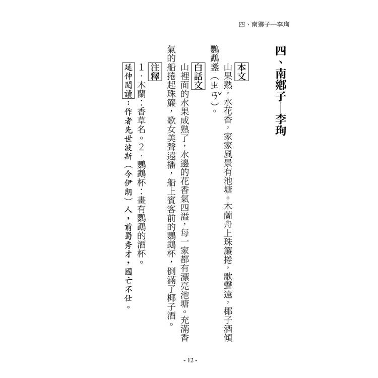 以上內容節錄自《絕妙好詞七十五首》蘇志誠◎編譯.白象文化出版