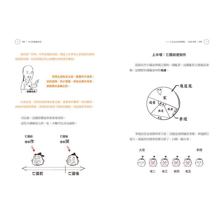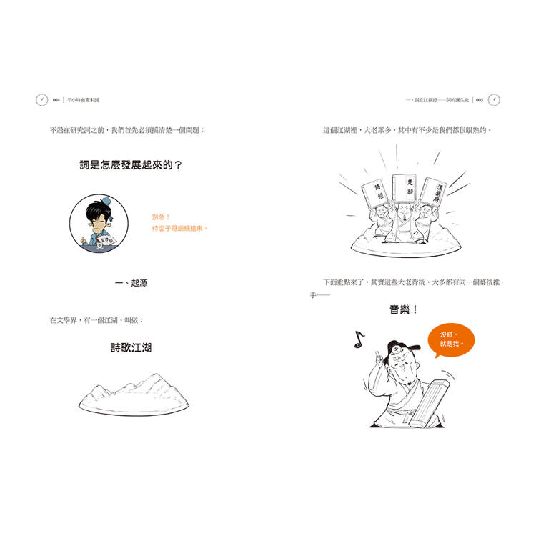 這是一本輕鬆有趣、扎實有力的歷史漫畫書,內容真實且嚴謹,將原本枯燥生澀的知識穿上「搞笑幽默」的外衣。沒有拗口難懂的詞彙,沒有刻意賣弄的文采。從宋詞的創作故事著手,掌握宋詞的來龍去脈。