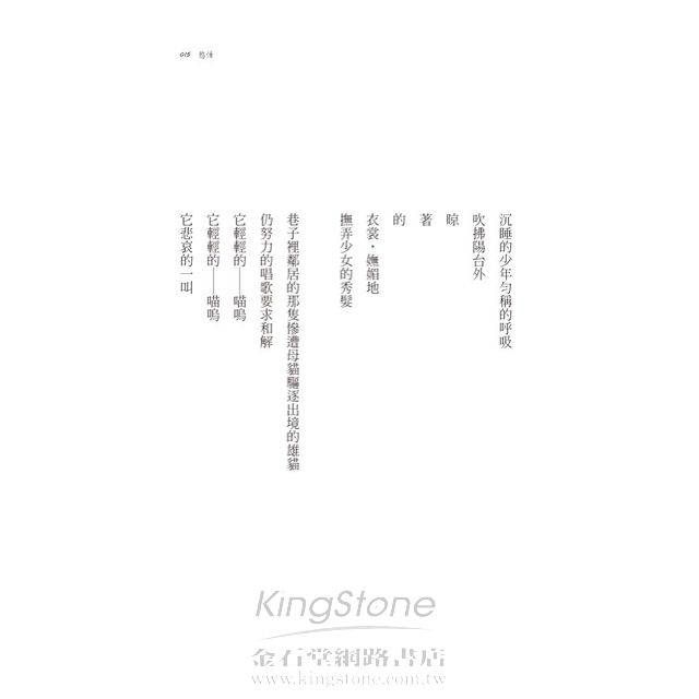 近年,停止了寫詩的動機。寫詩若是欲遮還掀,同樣是欲語還休的舉動。如今,年紀已趨五十,不再需要遮遮掩掩,可以大膽地說:「我想與人更多的心靈交會,靈魂互相觸摸和相遇。」廿一世紀是一個更寂寞的世代,也可以是更大膽透露內心以至創造相遇相知之空間的年代。有人說,網路的偷窺文化反映的是寂寞的感覺,一種消隱於「江湖」無人認識的孤單心靈,以濡沫發出訊號,以眼神偷偷暗示靈魂(以至)肉體的乾渴。詩人,生於靈魂的乾渴,只是他自我暴露的形式有別於網路之類型,但其本質亦雷同。作為詩人,如今更體認到詩人的靈魂深處是作為人;而作為人,我心中期待的是與讀者有真實的相知相遇。