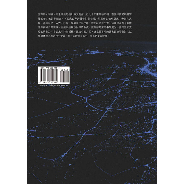 菲華詩人和權,自十四歲起便以中文創作,近七十年來筆耕不輟,在菲律賓異鄉書寫屬於華人的詩歌聲音。《回應世界的聲音》是和權詩歌創作的精華選集,分為六大輯,涵蓋自然、人性、時代、愛與和平等主題。他的詩語言平實,卻蘊含深意;既能溫柔描繪日常情感,也能尖銳揭示世界的裂痕。這些詩是黑暗中的燭光,亦是直面真相的解剖刀。本詩集以詩為橋樑,連結中西文明,讓世界各地的讀者都能聆聽詩人以愛與憐憫回應時代的聲音,並在詩歌的光影中,看見希望與救贖。