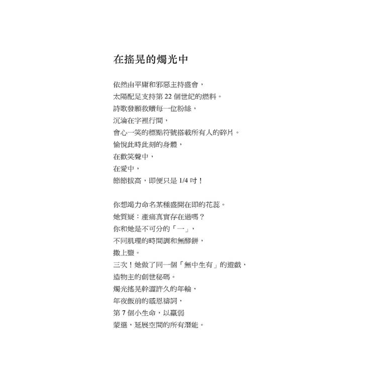 本詩集以溫柔、深刻和玄妙的語言,邀讀者在詩的節奏裡尋找被召喚、被塑造、被愛的生命故事。