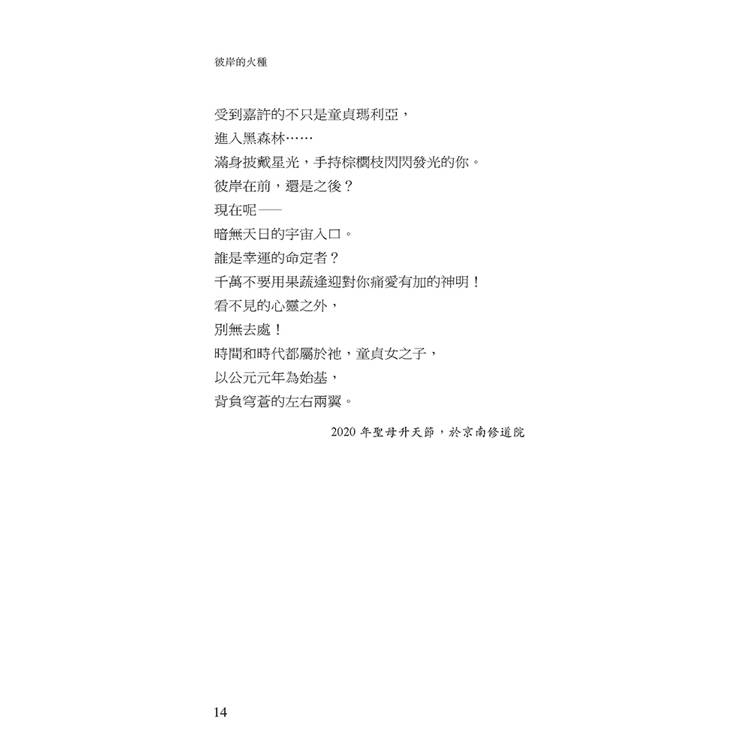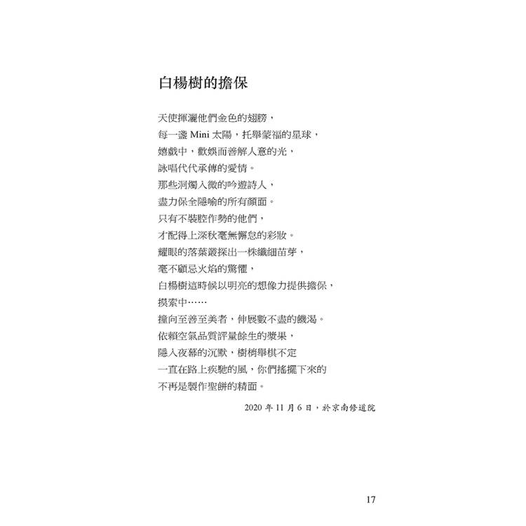 作者以細膩的筆觸和高超的當代詩的語言藝術,記錄了其身為司鐸與修院老師的靈性旅程。