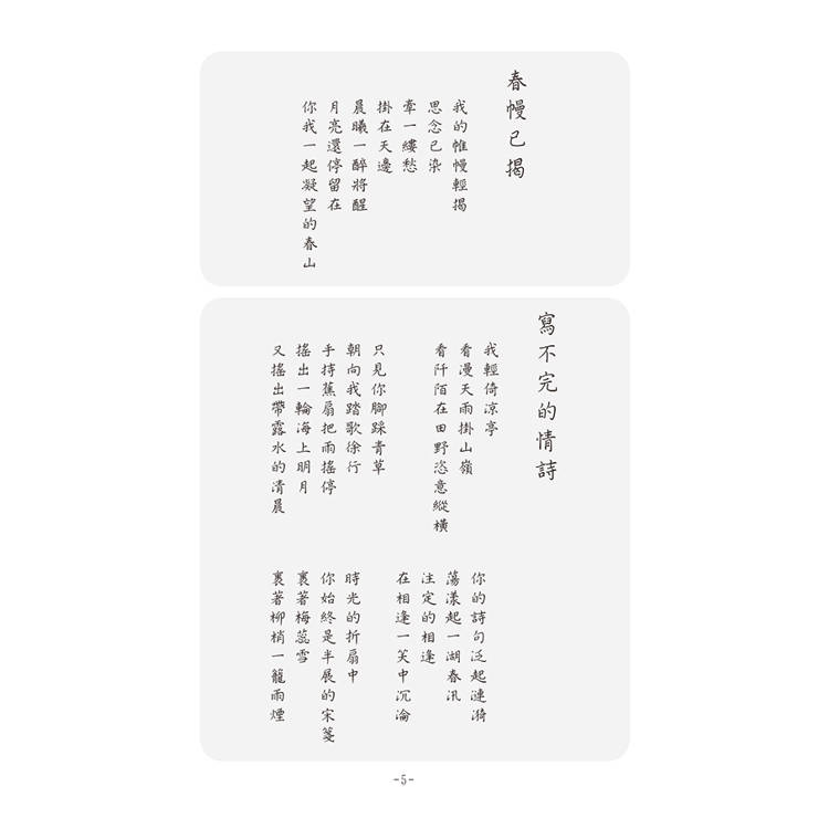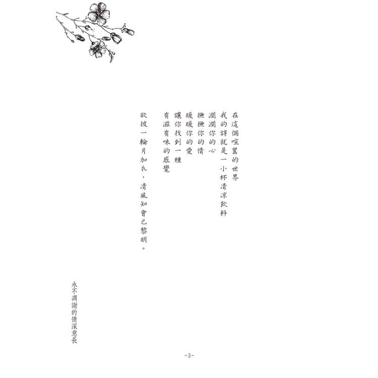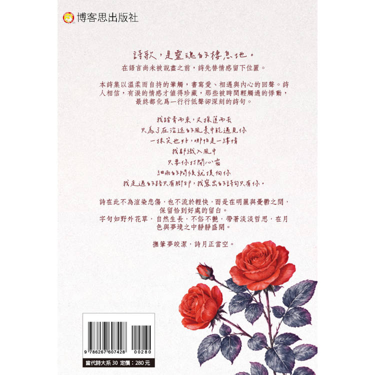 本詩集以溫柔而自持的筆觸,書寫愛、相遇與內心的回聲。詩人相信,有淚的情感才值得珍藏,那些被時間輕觸過的悸動,最終都化為一行行低聲卻深刻的詩句。