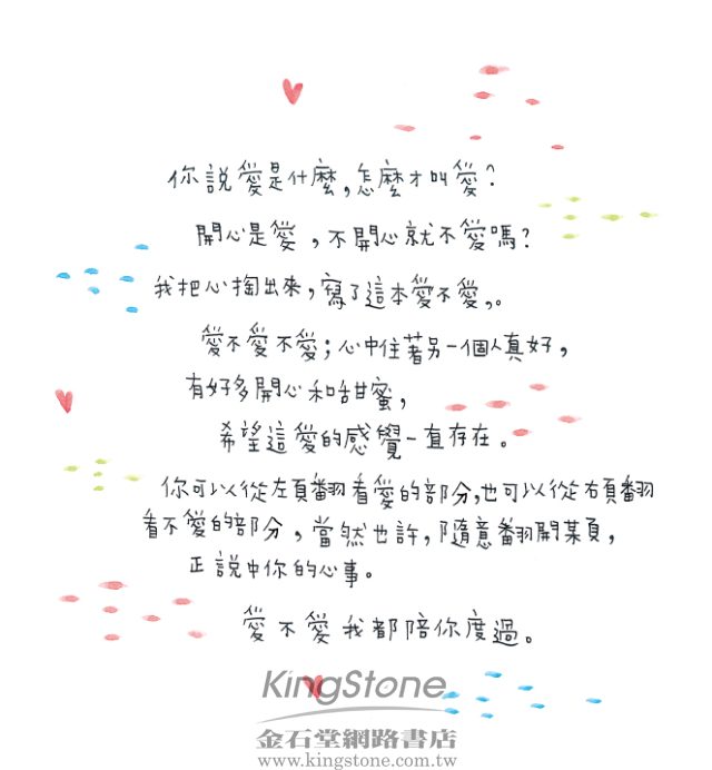 有愛就有不愛。也許隨意翻開某頁,正說中你的心事。愛不愛有我陪你度過。