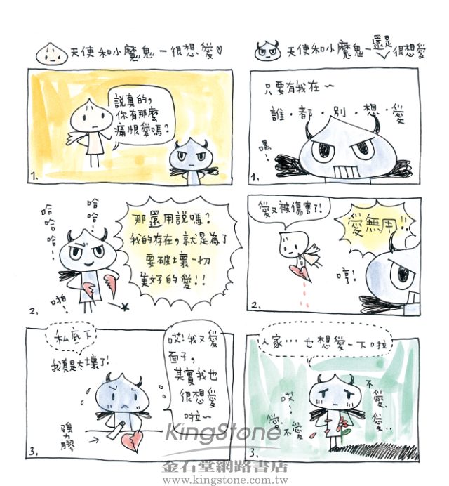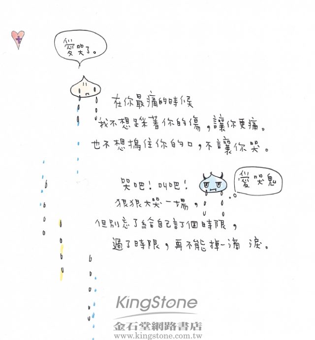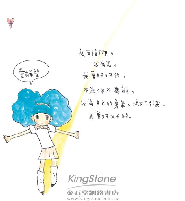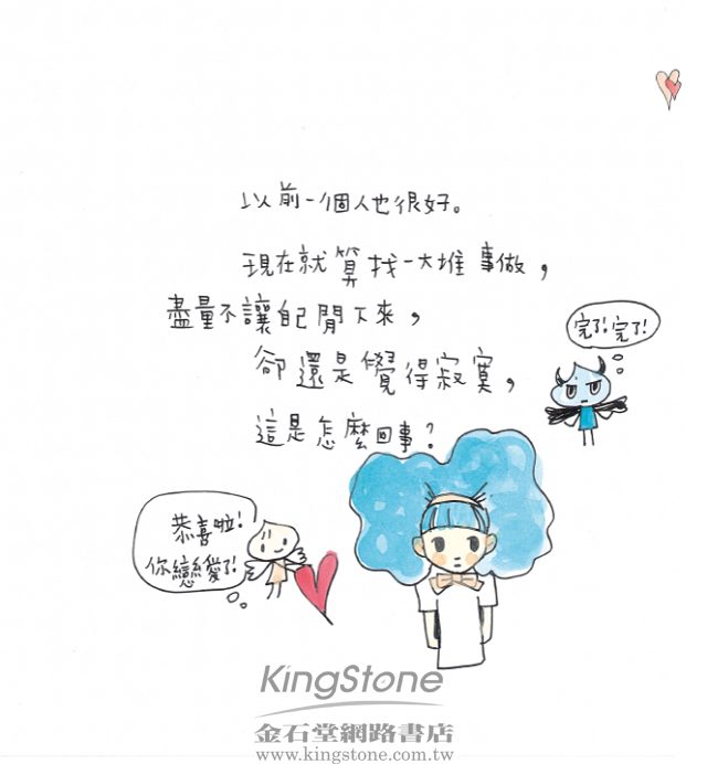 ◎衝進愛情。台灣繪本教主、金石堂年度TOP10圖文作家凱西,繼《勇氣之書》後,再發展滿載元氣、衝進愛情的圖文充氣書!「I」捲進愛情的迷魅,小天使與小魔鬼在耳邊私語,要I為愛情苦惱、寂寞、憂鬱、悲傷……。讀完了勇氣之書,你要下定決心狠狠愛。讀完勇氣之書,你要下定決心狠狠不愛。