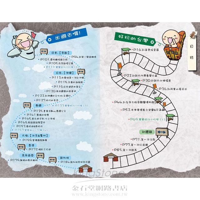 全書分為「好玩的台灣」及「出國去囉!」兩大篇章。