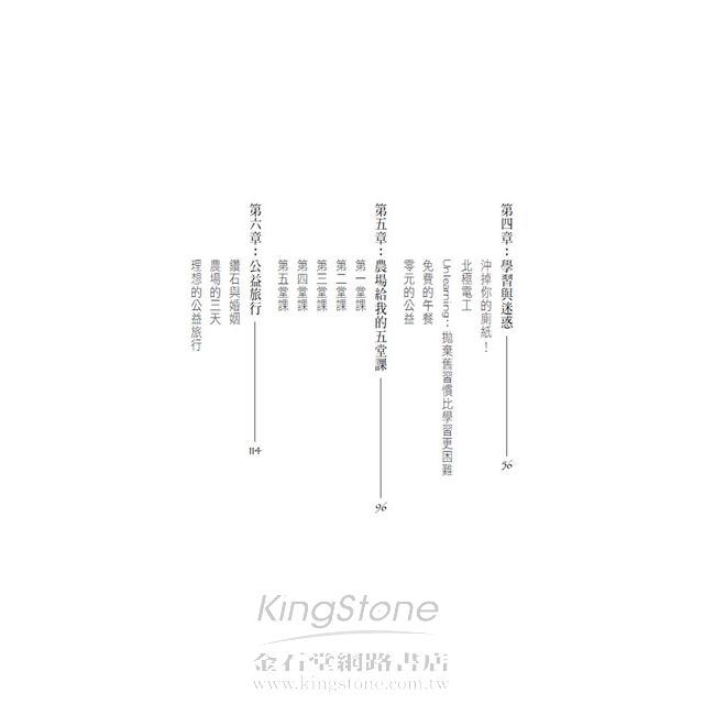 在這個每個人都想當專家、成為權威的時代,他發現在農業中,重視人竟然比技術更重要!一個完全不懂農事的城市人,要怎麼用農業,去感動語言、文化都完全不同的農人?心理學中傾聽的技巧,要怎麼用在傾聽大自然,然後知道如何幫助土地發揮力量?一旦有了一點成果以後,又要如何藉著公益旅行,去感動原本不在乎的人?這些都是學校沒有教的事。