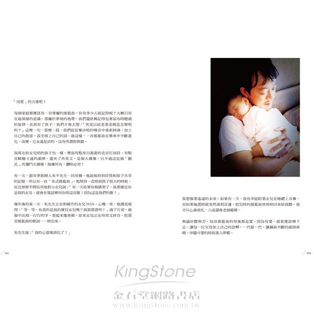 談到小孩,他說:「如果有一天,我有幸能陪著女兒在婚禮上共舞,而如果她那時候突然湊到耳邊,把兒時的搖籃曲悄悄唱回來給我聽,我不只心會溶化,八成還會老淚縱橫。」