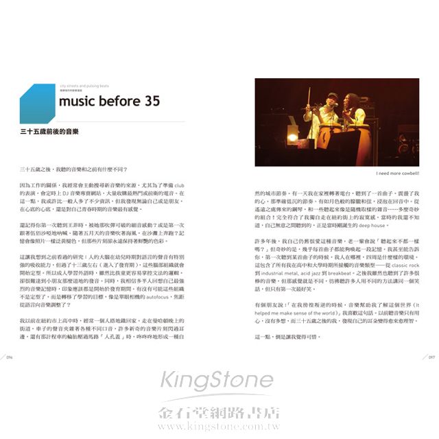 至於「城市」與「節奏」的相關篇幅,有不少出自《Brand名牌誌》和《Cheers快樂工作人》專欄。還記得當初接下名牌誌的邀稿時,我很擔心自己不夠了解名牌,而後來寫的文章,也果然和名牌都沒啥關係。但我喜歡它們,因為那反應了我對城市和時尚的觀點。《Cheers》則是以比較知識性的角度分享我的音樂世界。在這本書裡,我將那些專欄文章全部改寫,讓它們在不受篇幅的限制下,表達出更完整的概念。有幾個短篇故事出自《蘋果日報》的「越夜越野」專欄。當時版面有限,許多故事剛開頭就得結束了。真正的「導演版」總算能在這裡露面-the real story is here!