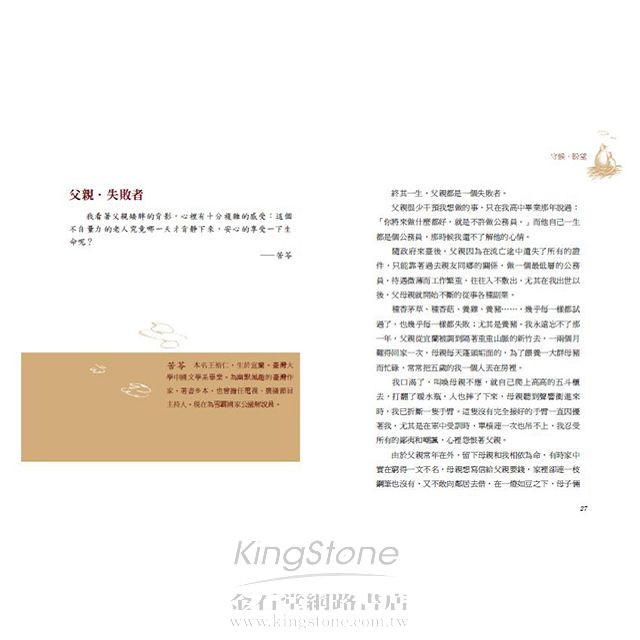 本書收錄琦君、林海音、張曉風等十六位知名人士的作品,文筆細膩,風格溫馨。透過作者的筆觸,彷彿與其共同經歷了人生重要的關鍵時刻,感受到歡欣聚首、生離死別等等的過程,讀起來格外讓人動容而發人深省。