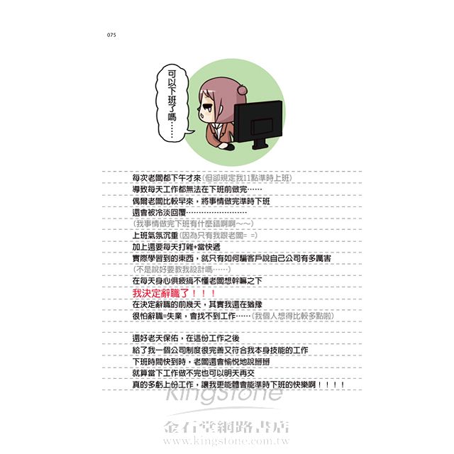 我認為,蒂蒂在最後寫下的「你算哪根蔥?」就是給所有成長中的菜鳥的最佳建言。就讓咱們繼續翻閱下去,伴隨可愛的作風與青春的思維,一起進入蒂蒂的職場世界吧!
