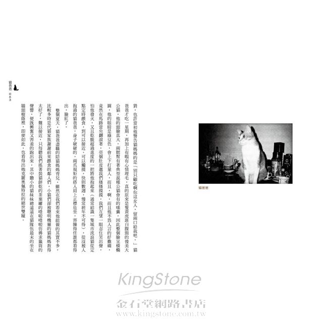 價。她寧可承擔感情的沉重牽掛,也不願意為了保護自己,而在對貓族的尊重與關懷之間打折扣。讀這本書,這個態度——我想也是街頭巷尾很多「愛心媽媽」的態度—給我留下了最深刻的印象。