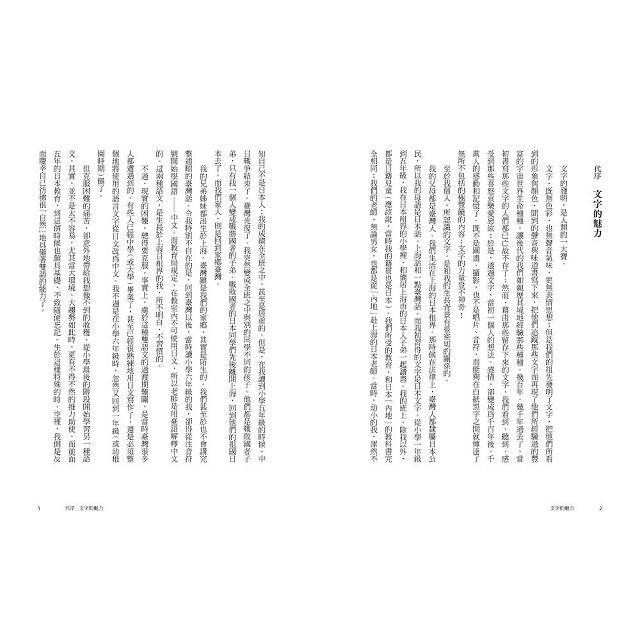 做個堂堂的中文人,林文月老師從學術的六朝學術寫作一路信步走來,到櫻花紛落的日本文學翻譯,再到散文寫作而今現在,擁有三支采筆的林老師,在《文字的魅力》中,收錄從未刊印成冊的文章,而成皇皇一冊、二十餘萬言;既是跨越時空的文學交感,復又乘馭神思千里之文字賦形,而回到了文學的本身無涯之對話與魅力。這本書見證了一位文學家之大河壯?,始於不辭涓滴之用功與包容,值得愛文字之人、愛書之人,同感互通文字的魅力深刻久遠、?遠無窮。
