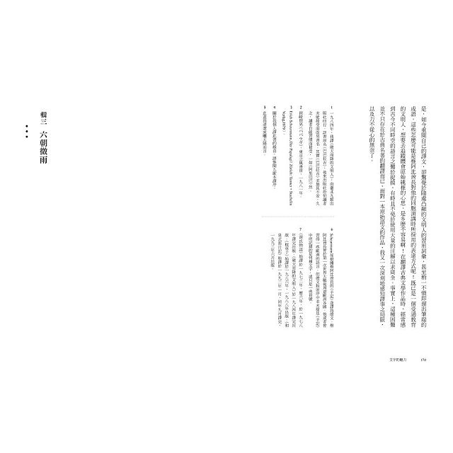 縱覽《文字的魅力──從六朝開始散步》,如同群山勁麗、千壑爭奇,而其實次第井然、成長可尋;這本書見證了一位文學家之大河壯濶,始於不辭涓滴之用功與包容,最是情真辭切,值得愛文字之人、愛書之人,同感互通文字的魅力深刻久遠、文學之啓示濶遠無窮。