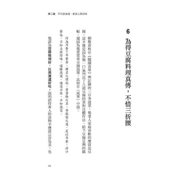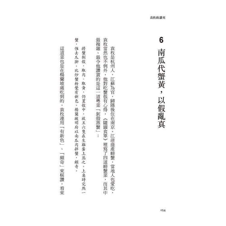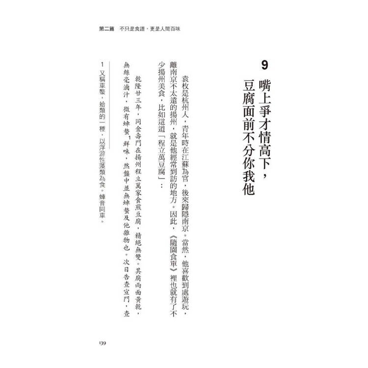 袁枚坦言自己「好味,好色,好葺屋,好遊,好友,好花竹泉石,好珪璋彝尊、名人字畫,又好書」。一個如此有趣、有情有義之人,值得後人學習。從《隨園食單》中讀出一個真性情的袁枚,是我的心得,也是寫作本書的目的,希望你喜歡!