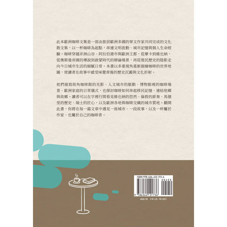 他們描寫街角咖啡館的光影、人文城市的脈動、博物館裡的咖啡場景、歐洲家庭的日常儀式,也探討咖啡如何串起移民記憶、連結他鄉與故鄉。讀者可以在字裡行間看見維也納的悠然、倫敦的節奏、馬德里的歷史、瑞士的匠心,以及歐洲各地與咖啡交織的城市質地。翻開此書,你將在每一篇文章中遇見一座城市、一段故事,以及一杯屬於作家、也屬於自己的咖啡香。