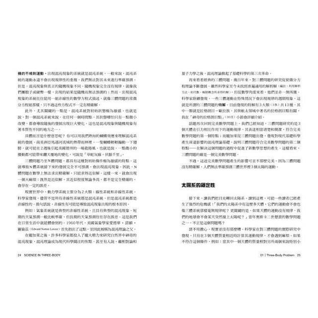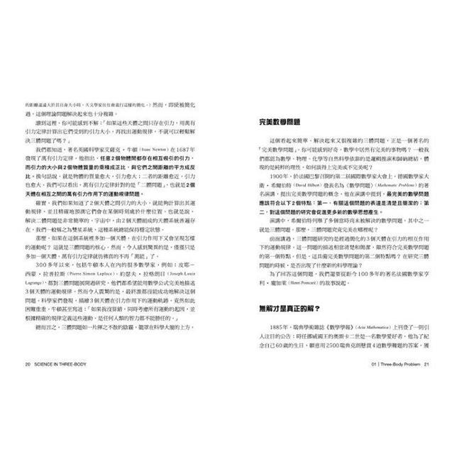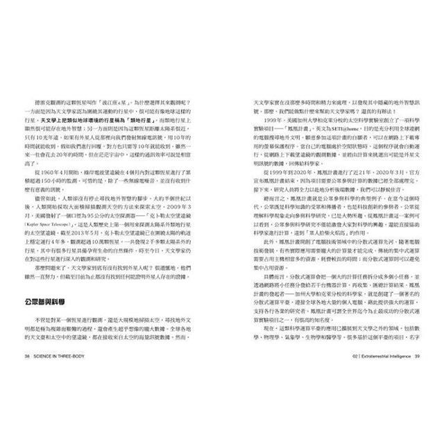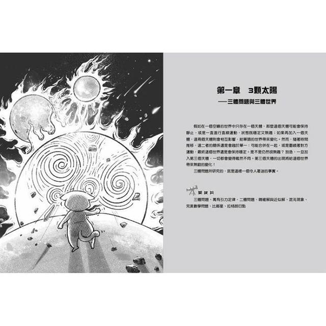 本書的初衷,就是解讀該系列小說的科學概念、分享筆者閱讀時的收穫,與讀者共同探究小說中的思想內涵。本書以《三體》的情節為線索,對該系列小說中提及的部分科學原理和科技名詞做了簡要解說,涉及自然科學中的數學、人工智慧、古典力學、相對論、量子力學、宇宙學、熱力學、弦理論、天文學、認知科學等,還有賽局理論、歷史和哲學等人文學科。本書突出描寫學科的發展和科學家的故事,力圖體現科學方法和科學精神。為了方便讀者閱讀、快速瞭解重點內容,書中每一章都以「關鍵詞」的方式列出該章涉及的主要專有名詞。此外,本書也搭配了輕鬆、有趣的插圖,適合各個年齡階段的讀者閱讀。