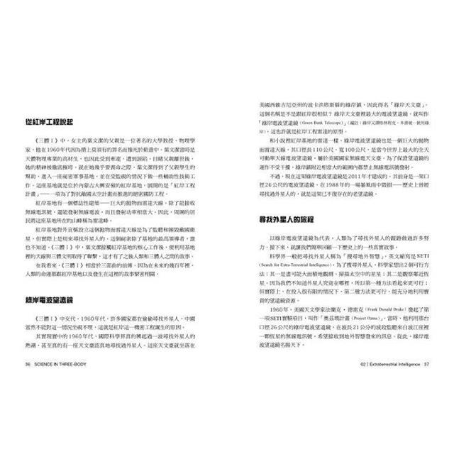 本書是對《三體》中的知識進行系統解讀的科普作品,結合小說的情節發展,對其中涉及的核心概念及科學原理進行了詳細的解說,涉及物理學、宇宙學、人工智慧、數學、心理學、社會學,乃至哲學的方方面面,有歷史上科學家們的故事,也有對人類未來社會充滿熱忱的展望,內容具有令人驚嘆的廣度。此外,為了方便青少年朋友們的理解,本書還配上了有趣的插圖,對艱深的知識進行「降維」處理。