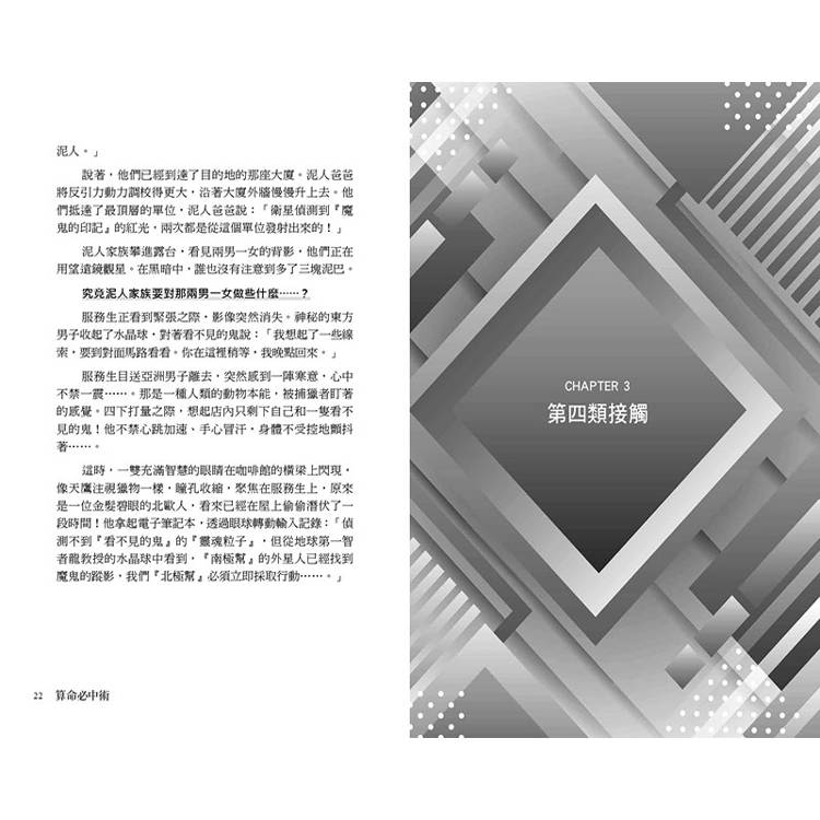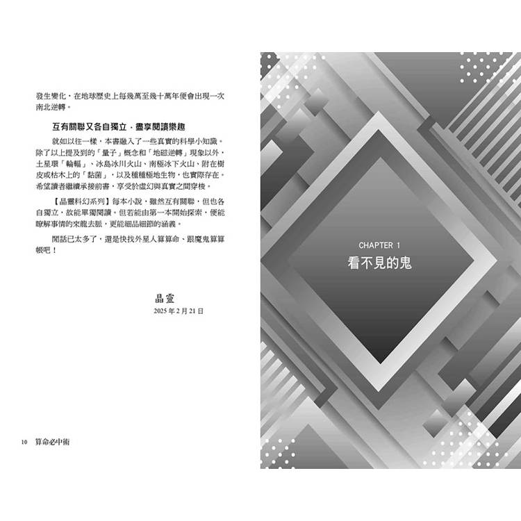 然而,這位摯友最令我印象深刻的是她的創意與想像力,以及對新事物的好奇心,可能是這些特質使她成為了一位出色的科幻小說家,而《算命必中術》已是她的第三部科幻作品。